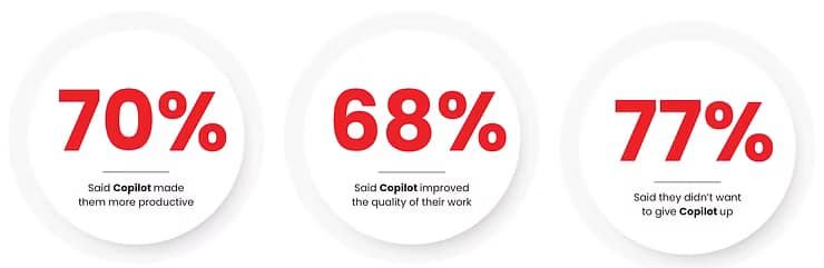 “68% of users feel that Copilot has improved the quality of their work and saved more than 10 hours per month”